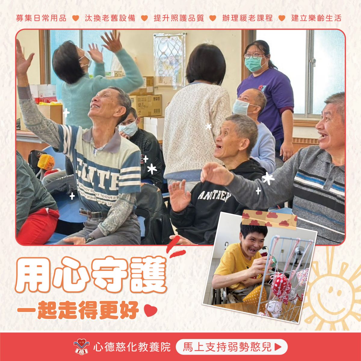 | 立案核准字號:八五社六字第51417號 郵政劃撥帳號:31472923 戶名:財團法人台灣省私立心德慈化教養院 其他捐款方式 本機構為《台灣公益團體自律聯盟》會員 |